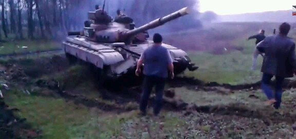 Правда: Первые танки и вооружённые боевики были отправлены на Донбасс уже 5 марта, ещё до референдума в Крыму. И эти танки люди останавливали голыми руками.